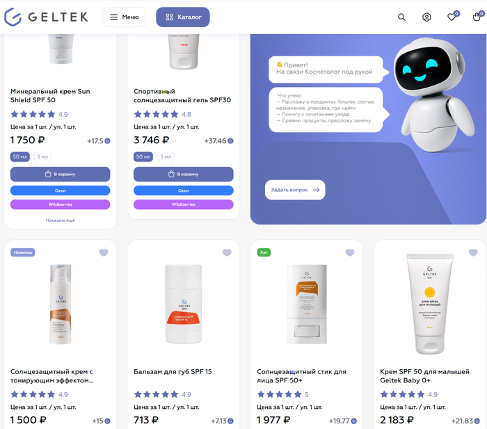 1) Аааткрываем сайт производителя на солнцезащитных кремах и ищем чё там подороже стоит. Извините, в сам пост особо не вчитывался и не искал именно ту продукцию с картинок. Просто у меня аллергия на тексты, сгенерированные нейронкой. Подороже оказался вон тот гель за 3746 рублей. Его и возьмем.