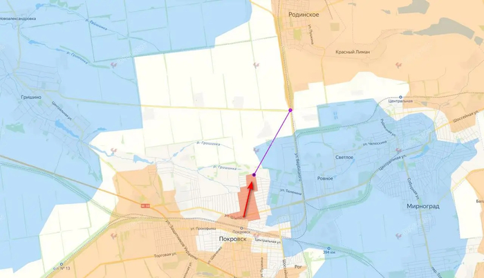 Штурмовики группировки войск «Центр» сумели продвинуться от улицы Шмидта в северной части города примерно на полтора километра в микрорайоне Динасовый поселок и закрепились на улице Молодежной, являющейся северной окраиной Покровска. Таким образом, российские войска сделали горловину мешка еще уже, от новых позиций ВС РФ на окраине до передовых частей со стороны Родинского не больше 2,5 км. На данный момент наши закрепляются в частном секторе микрорайона.