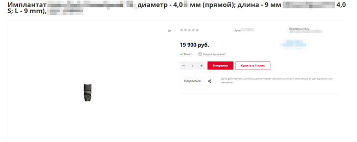 Если набрать в гугле "себестоимость зубного импланта" - хрен найдешь реальную стоимость этой железки. Везде будет написано что-то вроде "стоимость имплантации - от 17 до 50 тысяч рублей".