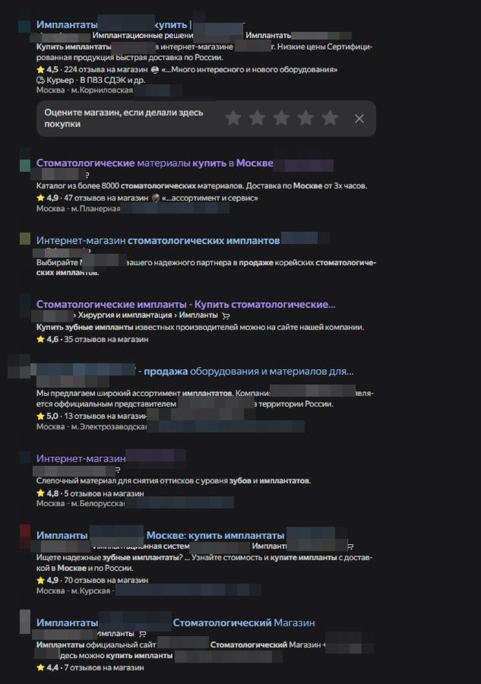 Открываем Яндекс/Гугл и пишем: «Купить зубные импланты»