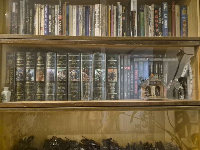 Это один из трех моих шкафов с книгами (неполностью). Полка с технической литературой, кинологическая полка и две фентези. В свое время моя семья скупала практически все новинки, выходившие в издательстве "Армада".