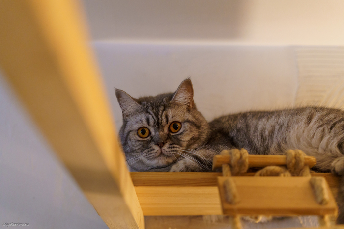 Котика нам оставила пожилая женщина, которой дали комнату в доме пенсионеров. Никто из ее родственников не захотел забрать ее питомца. Котик стал очень популярен в котокафе из-за своего окраса и быстро нашел новый дом :)
