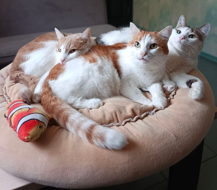 Не так давно я рассказывала на пикабу историю о 70 кошек в квартире сумасшедшей женщины. За лето мы вывезли оттуда практически всех котиков, оставили только три кастрированных кота. Братья были одни из счастливчиков. Оба нашли новый дом :)