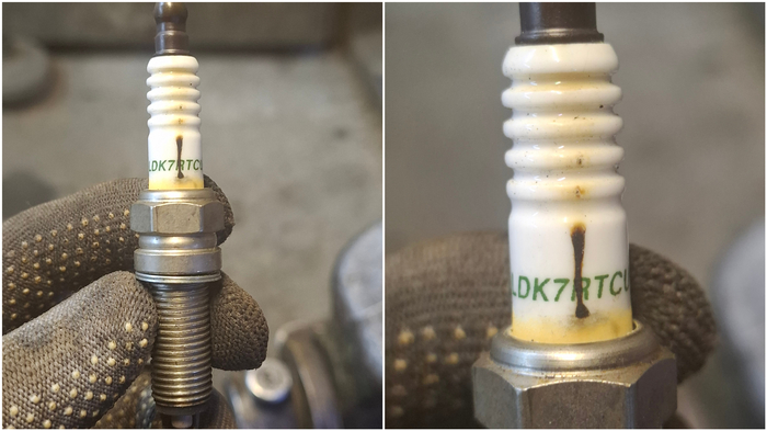 Я подкинул заведомо исправную катушку зажигания в третий цилиндр, но это не помогло. Далее, можно было бы снимать форсунки и ставить на стенд, ведь какие могут быть претензии к свечам всего чрез десять тысяч километров пробега? Но я всё-таки решил проверить свечи и не прогадал.