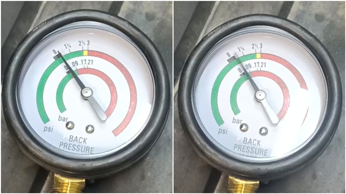 Затем я замерил противодавление на выхлопе, что бы исключить забитость катализатора, либо его осыпание или оплавление, невидимые сверху. Но противодавление было в допустимых пределах на любых оборотах и в любых режимах работы двигателя.