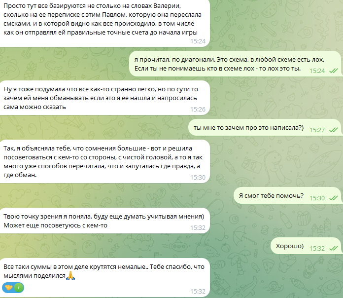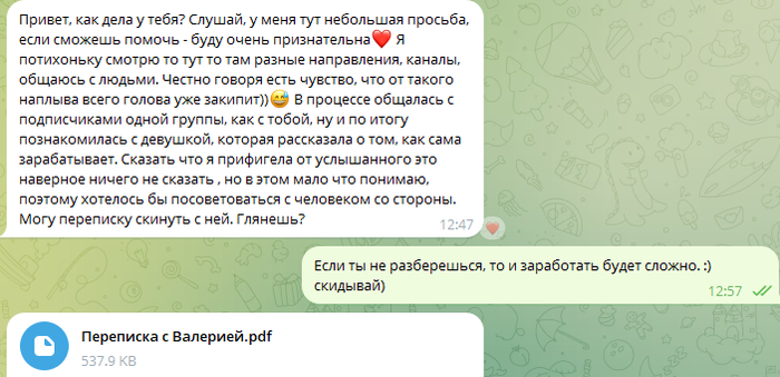 На этом этапе я поверил, что это просто девушка, слишком уж много вложений в диалог без попытки развода.