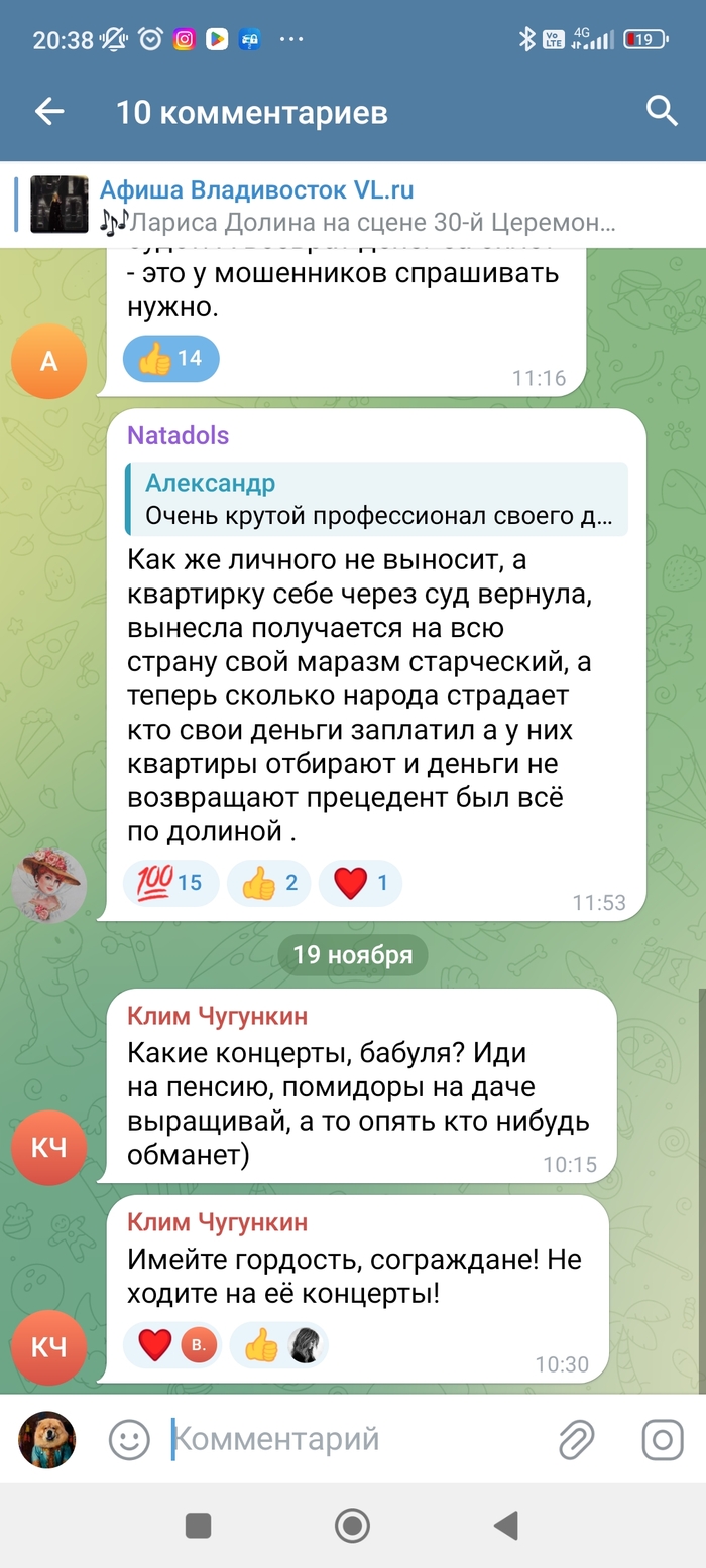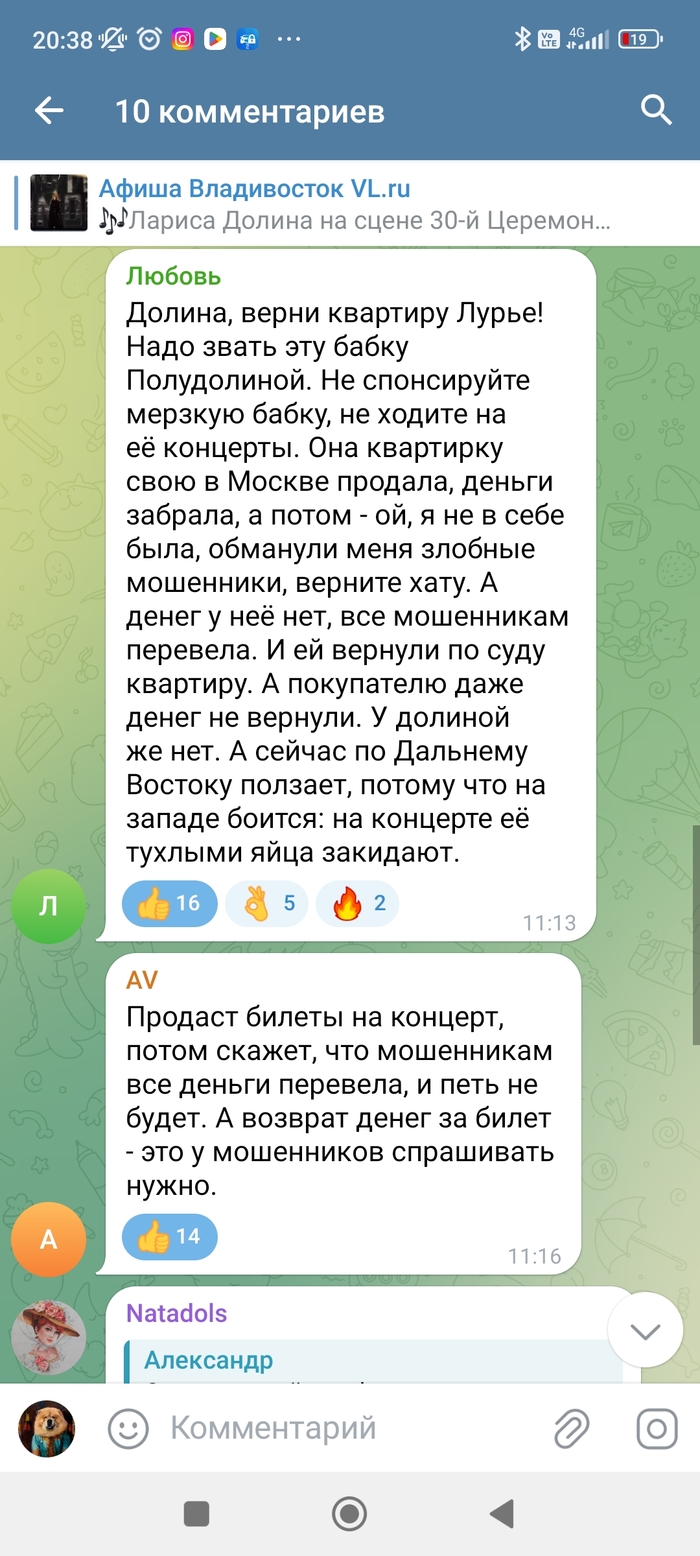 Ответ на пост «Комментарии в чате концерту Долиной»