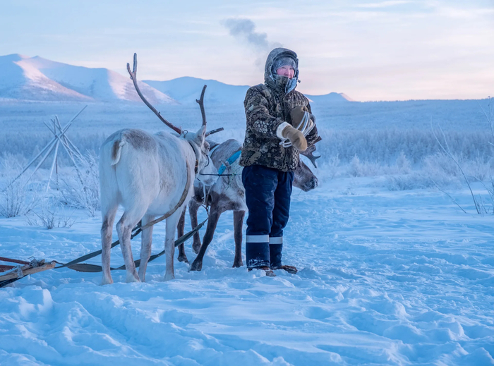 Якутские лошади — уникальная порода, способная жить на улице при –50°C, питаясь травой, которую копытами раскапывают из-под снега. Олени тем более приспособлены: у них густой мех и копыта расширенные для лучшего сцепления со льдом.