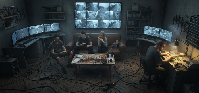 Впереди было восемь часов дежурства. Рутина подпольщика: мониторинг камер наружного наблюдения, проверка логов Mesh-сети, контроль температуры серверов. И, конечно, работа. Тот самый код драйвера на C++, который никак не хотел компилироваться без ошибок переполнения буфера.