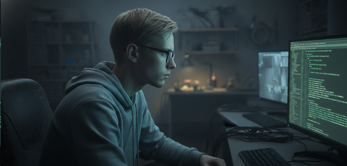 Он свернул окно с фотографией, открыл терминал и погрузился в работу. Зеленые строки кода побежали по черному экрану, отражаясь в стеклах его очков.