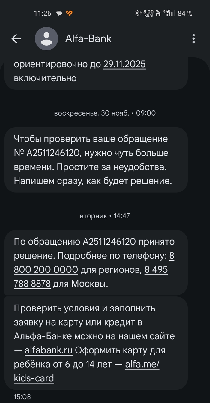 "Решение принято" но вот какое решение? Неужели написать в смс это сложно? Дорогие смс? Так вы мне тут же рекламу свою засунули.