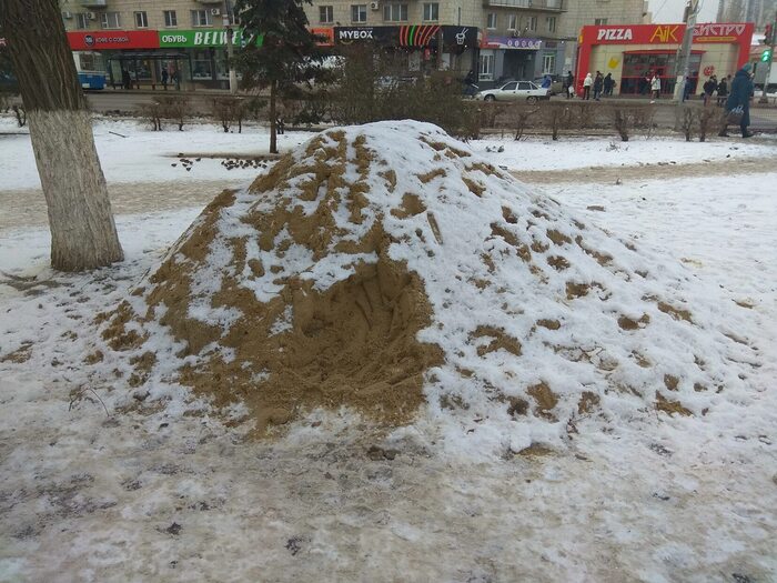 Естественно за пять минут долбежки ломом по песчаному льду я понял, что скорее отдам концы чем наберу нужное количество песка хотя бы для кучки, уж не говоря о приказанной КУЧЕ!