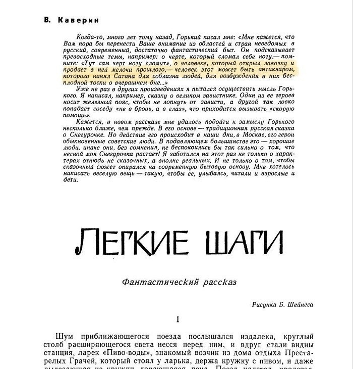 Недавно я рассказывал, что первую публикацию своей сказки «Легкие шаги» в журнале «Москва» Вениамин Каверин начал словами: