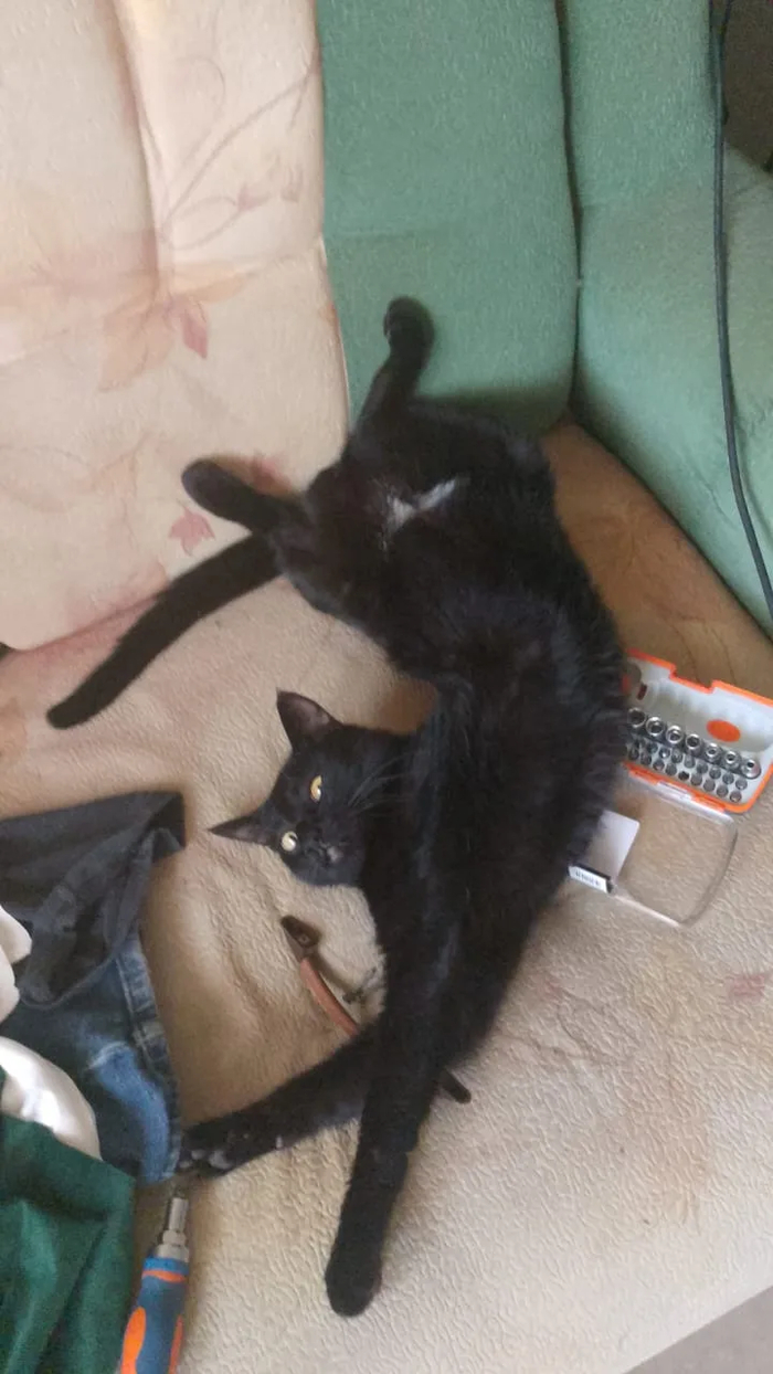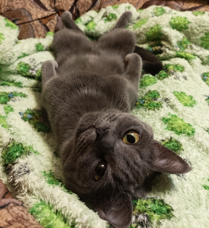 Ещё из странностей: не умеет пользоваться когтями. Не царапается от слова совсем (хотя диван и обои со мной бы поспорили).