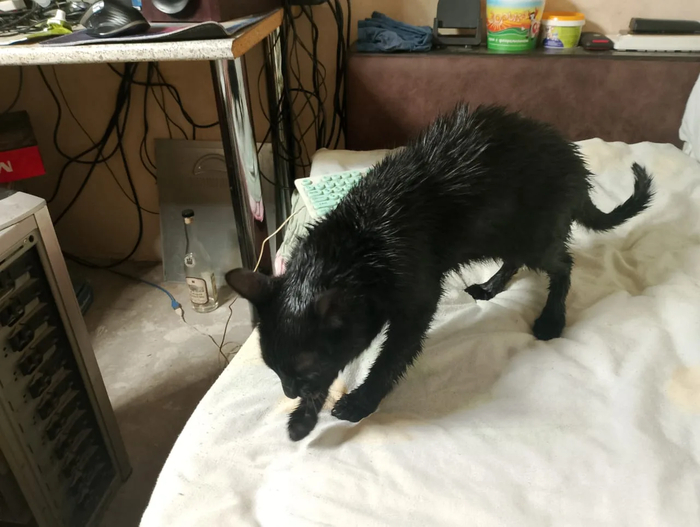 Моя кошка побеждает в соревновании долбанутых привычек. Зовут кошку Пепелюшка, а следовало назвать как минимум Долбанушка.