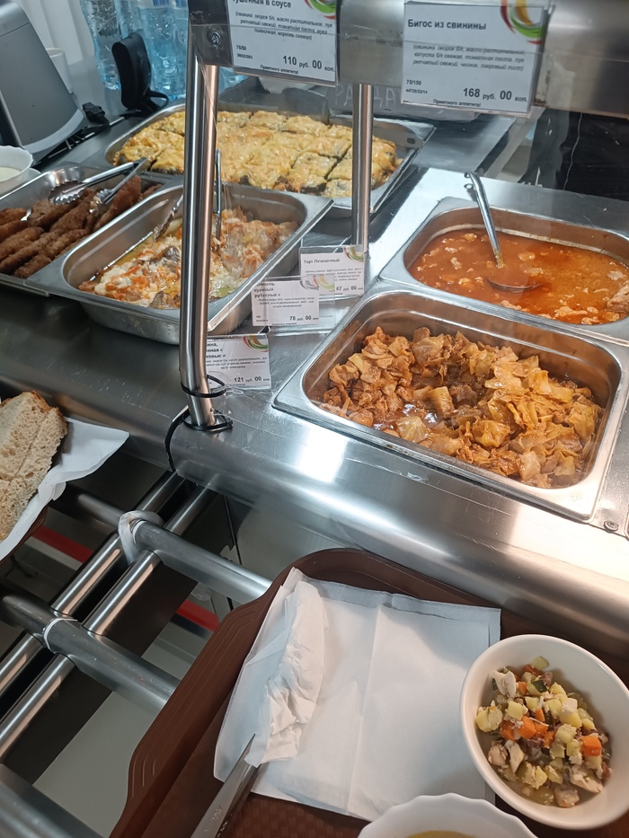Далее разнообразные гарниры и вторые блюда с разными вкусовыми и ценовыми характеристиками. Ну и выпечка конечно.
