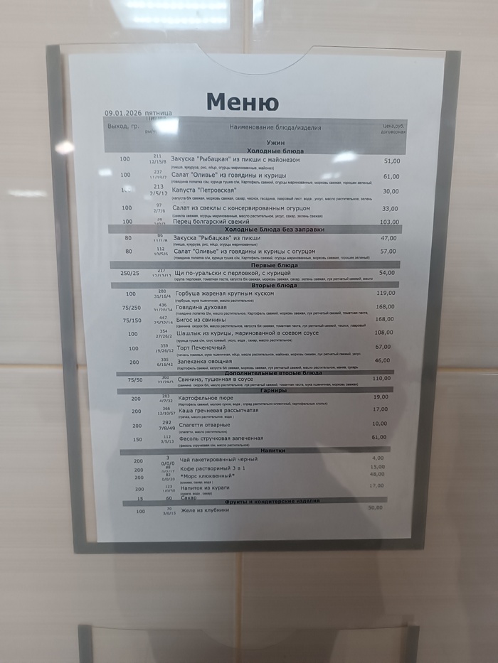 Всем здравствуйте, предлагаю вашему вниманию меню одной из столовых месторождения на полуострове Гыдан, ЯНАО. В условиях полярной ночи организму требуется много витаминов и вот чем кормят вахтовиков в столовой.