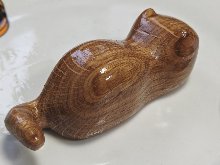 Очень понравилась интересная текстура дуба - какие-то светлые кольца идут перпендикулярно годовым кольцам, я такого раньше не видел. В процессе понял, что уши надо было делать больше, особенно учитывая, что при шлифовке они стачиваются. Процесс мне понравился, буду делать еще, об этом в следующих постах. Всем котиков!