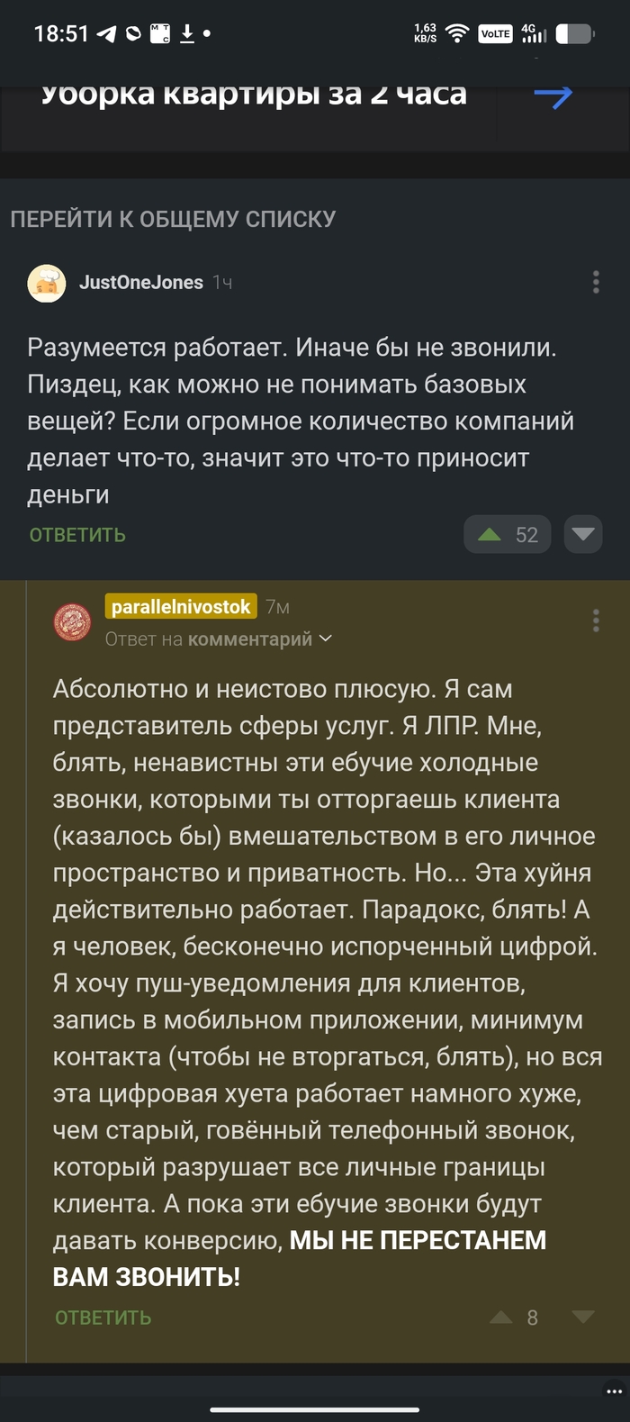 Насчёт того, что пишете вы: это не имеет никакого отношения к маркетингу от слова совсем. Как это происходит: в компанию к собственнику приходит контора ишаков и говорит: «Мы тут сделали робота, который обзванивает (ну или люди звонят, что уже реже). Вот у нас показатели, и вам всё это стоит 50к в месяц» (показатели, само собой, пиздёж). А что такое 50к для организации? Да ничего. Ну вот и находят они таких 50–100 контор и заёбывают население. Как правило, руководители про эти 50к/мес даже не вспоминают. Ну срок жизни — 3 месяца в одной конторе в среднем. Ну какому-нибудь ИП этого вполне достаточно.