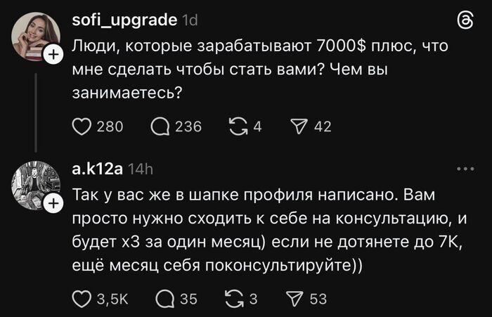 А мне, нихуя не смешно. Бывшая жена была, покупателем подобных курсов и женских тренингов. Психологи, коучи, полный цикл. Блиновская , Надежда Асанова , ещё там какие-то. Всё "осознанной " хотела стать, даже маткой дышала . Там из неё, вообщем-то доброй , простой, доверчивой девушки, буквально зомбака сделали. Остановить её , не мог. Основное, что ей там внушили: муж - абьюзер , он тобой манипулирует сейчас ( и всегда), ему не хватает ума , понять что ты - личность, уйди от него! Ушла . В церковь - не ходи , священники манипулируют твоим сознанием - а ты личность! Ходить перестала. Родители, плохо и недостаточно тебя любили в детстве , заставляли делать уроки и мыть посуду и даже повышали на тебя голос, не уважая твою личность, держись от них подальше! Уехала на другой конец города, общение свела к минимуму. Незадолго до развода , после 10 лет совместной жизни, я услышал от неё одну фразу, которая много мне объяснила. "Пойми, родители, дети, муж - это временные люди в моей жизни. Я ухожу, развиваться как личность, а ты остаёшься неосознанным " . Схватила годовалого сынишку и ушла в закат.