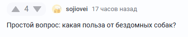 Я, честно, настолько в шоке от подобных заявлений, что ранее даже не счел бы нужным это выделять и комментировать. В моем мировоззрение такая позиция - дикость сродни каннибализму и педофилии. Оценивать право на жизнь существа с позиции его пользы? Да еще тут такое когнитивное искажение, что человек определяет пользу для себя. Так-то польза от бездомных собак есть. Особенно субъективная, для некоторых людей. Но не о том речь.