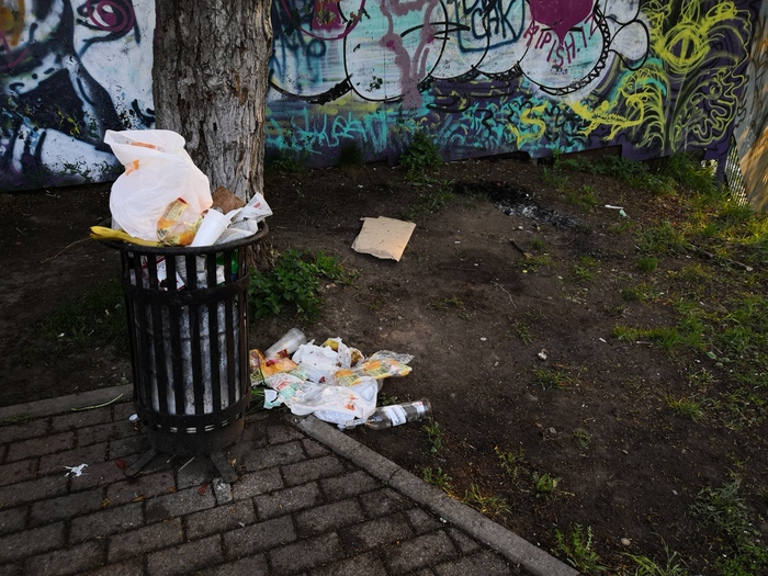 Единственная мусорка в парке. "Больше нет,поэтому я просто оставлю это под ней."