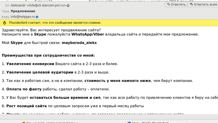 К Письму было приложено порядка 40 его писем за 2-е суток, + логи сервера.