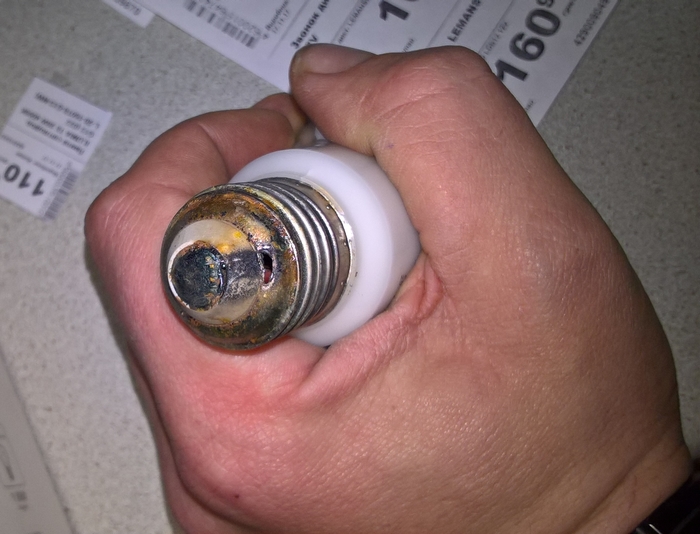 и при все при этом весь корпус лампочки в трещинах из-за тотального перегрева.