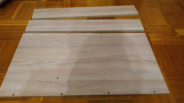 Поехали в Леруа, купили 1 доску 120x40, лягушки, уголки, газовые упоры, винты-конфирматы... короче все обошлось рублей в 450... договорились с отцом: он на днях поедет на дачу циркуляркой распилит нам крышку до размеров полки,  а из купленной доски отпилит боковушку и два ребра. Все ему отмерили и аккуратно начертили ...