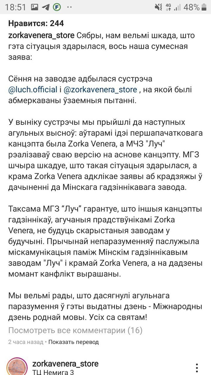 Минский часовой завод «Луч» выпустил лимитированную коллекцию часов «Мова». Ее создали к Международному дню родного языка, а в основу концепции легло стихотворение Максима Богдановича «Зорка Венера».