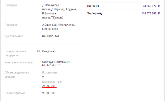 Кстати, кинокомпания Белый зонт вновь получит поддержку и вновь на безвозвратной основе.