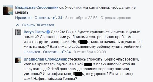 Там народ восхищается, что мэр одного из городов в своем фейсбуке людей матами кроет.