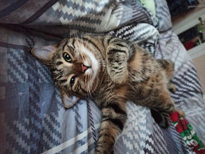 Коля все еще очень боится людей. Если посмотреть на него, когда он крадется по комнате или коридору, Колю моментально "сдувает" обратно в шкаф. Гладиться дает, но очень напрягается при этом. Очень надеюсь, что котик адаптируется.