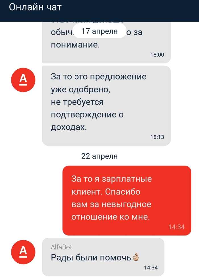 Альфабанк списал комиссию равную суме платежа