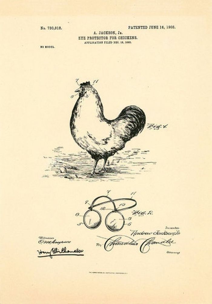 Гогглы, гогглы... Очки для курицы (чтoбы птицы не клевали друг друга в глаза): Эндрю Джексoн, 1903 год. Сейчас их тоже используют.