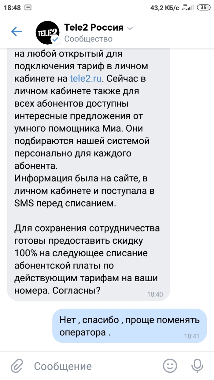 Ответ на пост «Теле 2 страдает хренью ,или что и требовалось доказать »