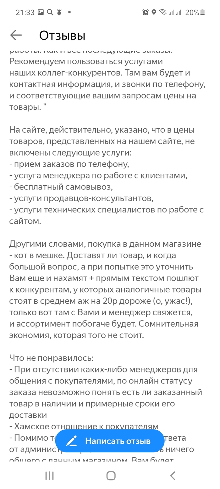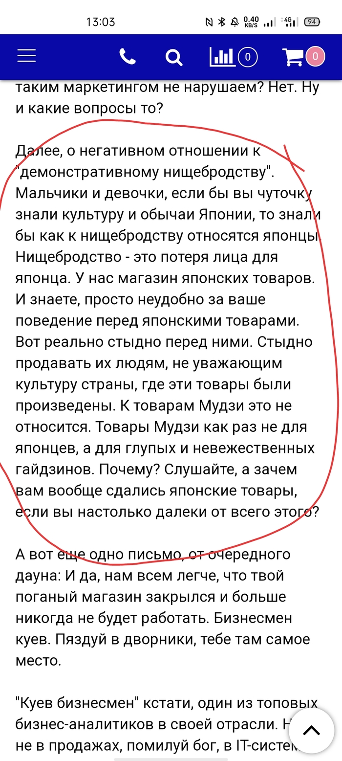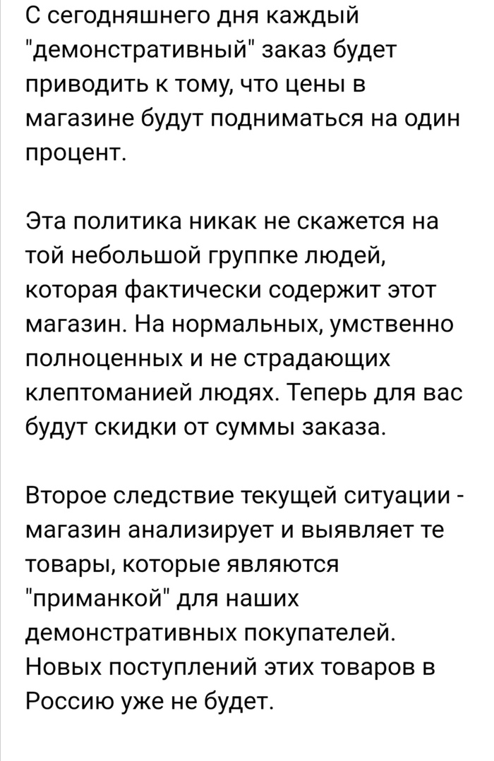 Короче все ясно - магазин збс, а кто не согласен, тот просто не понял концепцию. Напоминает лоток на базаре - не нравится, мол, иди в жопу, итак в убыток работаю. Ах, вы недовольны- тогда поднимем цены. Возмущаетесь и троллите - вообще закроемся. Мы-то работу найдём, а вы, тупые нищеброды таких клёвых ручек больше нет. Чего добивался владелец- я хз) Напоминает женское "ойвсе".