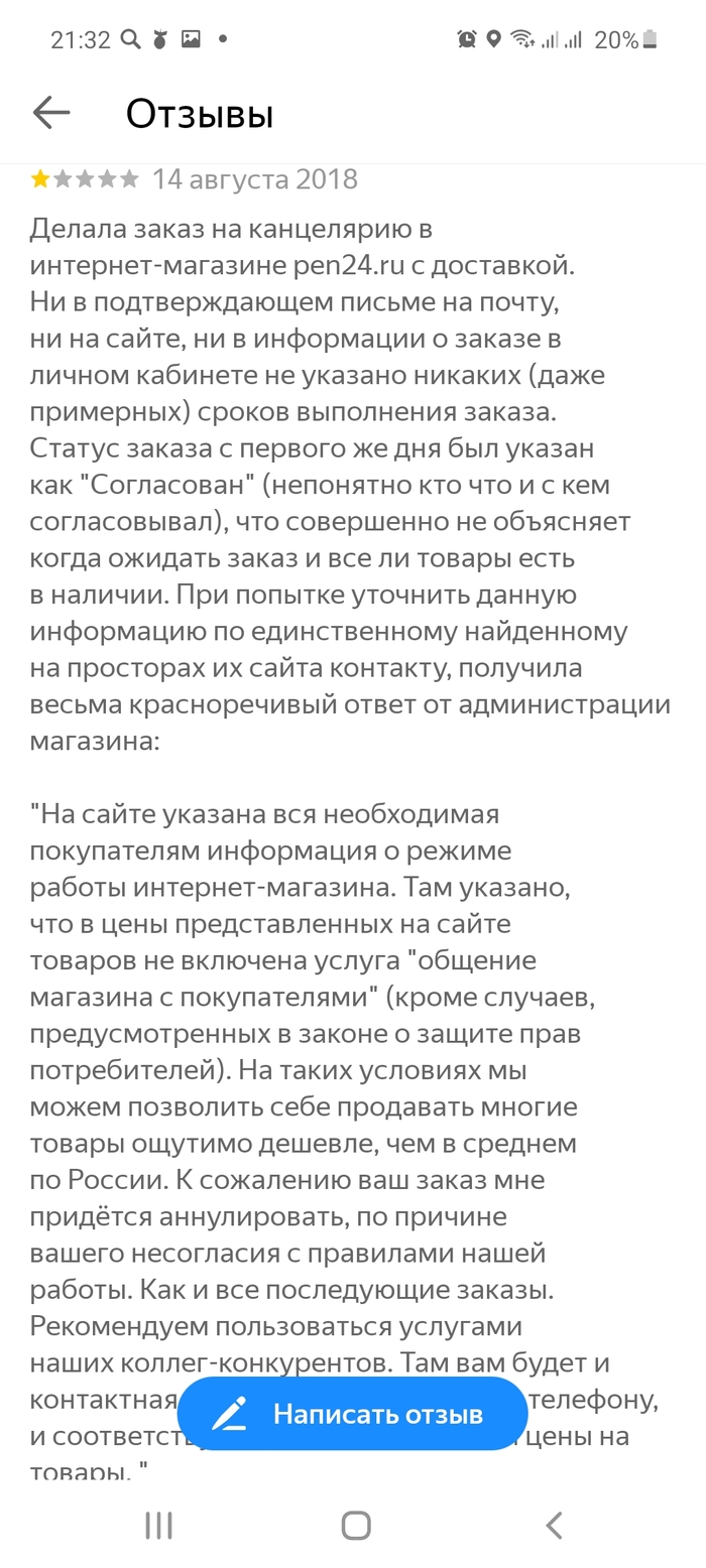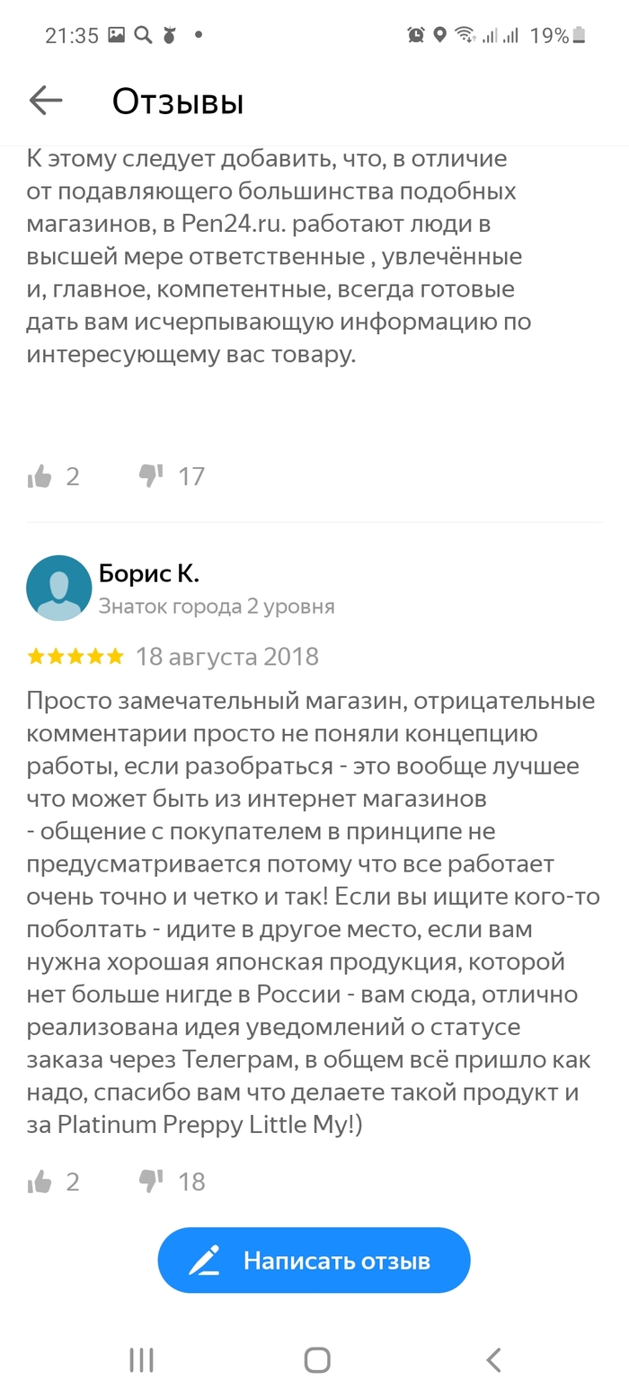 Почитал посты про супер - магазин pen24 . Должен сказать, что к подобныму отношусь достаточно критично, ибо уверен, что точек зрения всегда как минимум две, поэтому решил посмотреть отзывы покупателей о данном продавце японских канцтоваров. И на первом же ресурсе - тыдыщ!