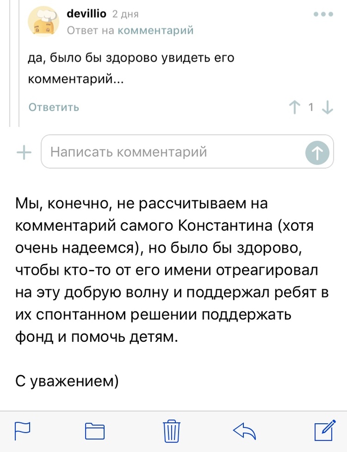 Совсем недавно на Пикабу прогремел пост о том, что есть еще люди в наших селениях, которые держат слово. Выигранные в споре деньги были великодушно направлены в фонд Хабенского, а в комментах @yakotleta предложил волну добра с Пикабу, в которой поучаствовали многие и даже @admin.