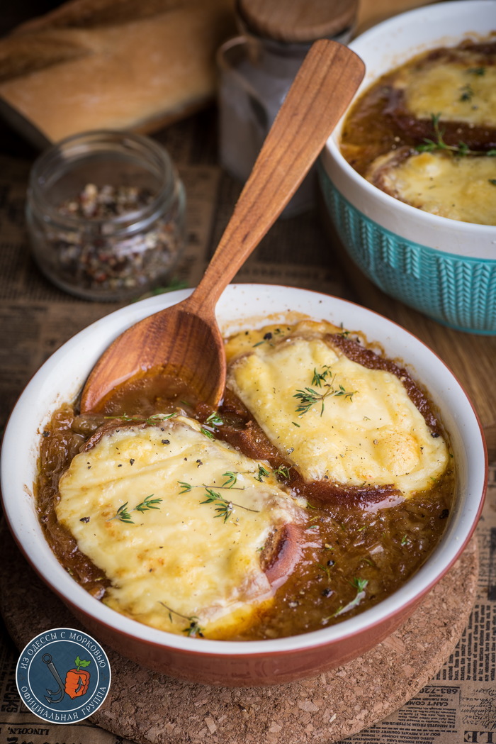 Выводы: классический зимний суп- согревающий и душевный. Густой, на вкусном крепком бульоне, с оттенком вина и большой сырной гренкой. Да, на его приготовление потребуется время- лук карамелизуется час-полтора, да и приготовление бульона также отнимает время. Так что все же рекомендую разделить эти два этапа и бульон приготовить заранее. Тогда все приготовление сведется к нарезке и карамелизации лука. И да, люди, имеющие стойкое отторжение к тому самому «вареному луку» луку из детства- могут успокоиться: карамелизованный лук – офигенная штука не только в супе, но и в качестве закуски и не имеет к вареному луку никакого отношения.