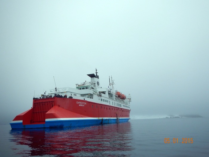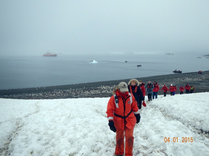 2. Экспедиционный - этот отвечал за работу с туристами: одевание, лодки, т.к., судно вставало на якорь метра в 100-300 от берега, огораживание мест перемещения, сопровождения туристов по земле, недопускание прямого контакта с местной фауной и т.д. Хлопотное дело, скажу я вам. Они высаживались первыми на берег и уходили последними. Начальником был американец.