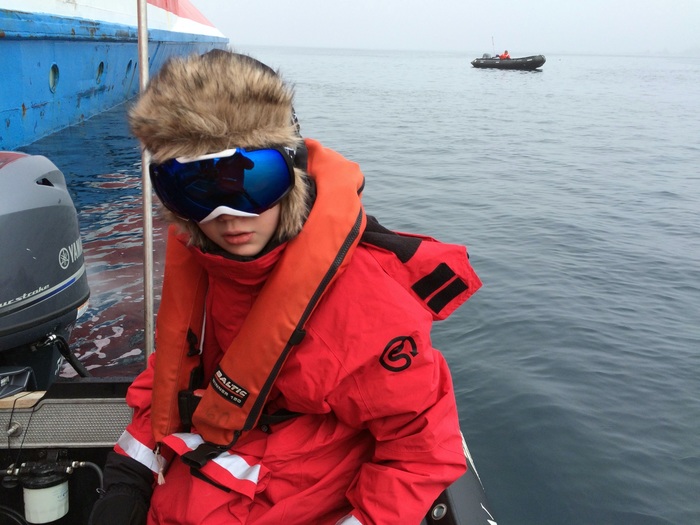 Процедура такая: сначала спускаешься на нижнюю палубу, там переодевалка Обязательная одежда: красная куртка (ее компания потом дарит туристу), непромокаемые штаны (свои, кто не взял - должен приобрести на судне), сапоги и спасжилет.
