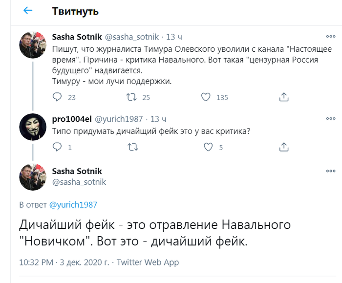 Олевский тупо в личном разговоре с Кашиным сказал, что есть мнение, что отец жены Навального связан со спецслужбами и живёт в Лондоне.