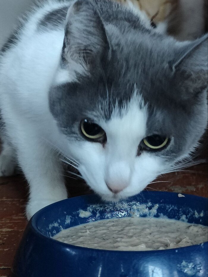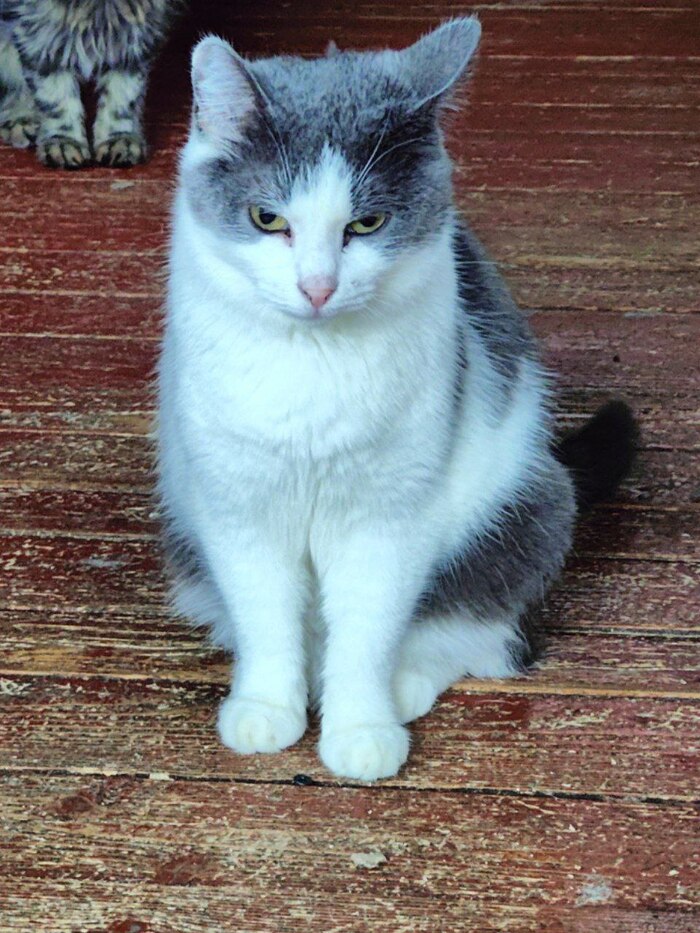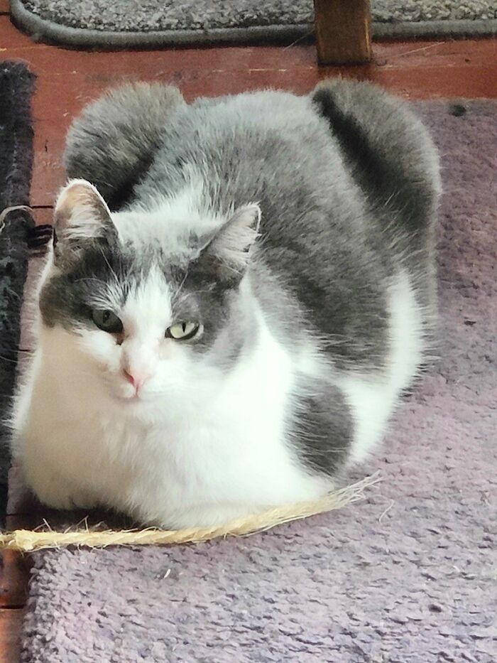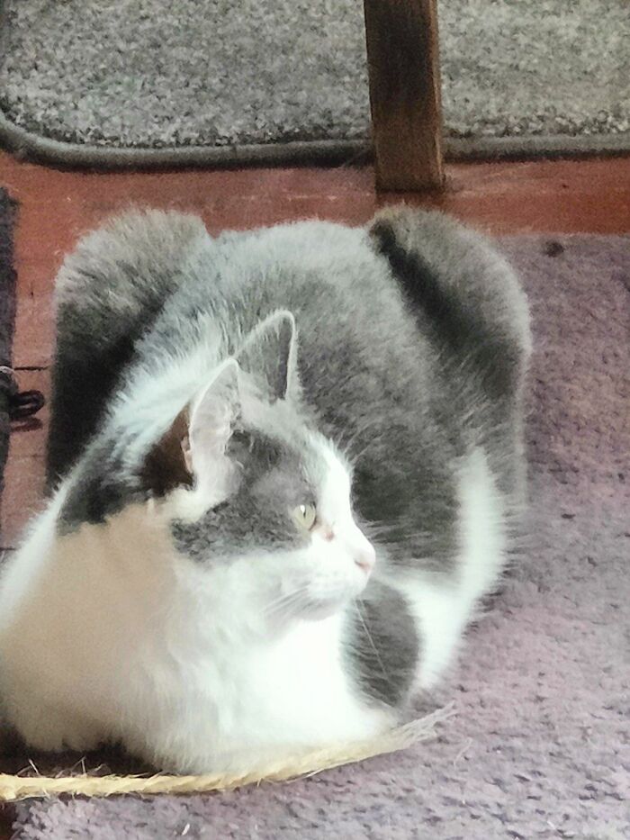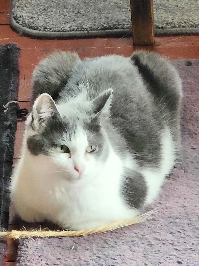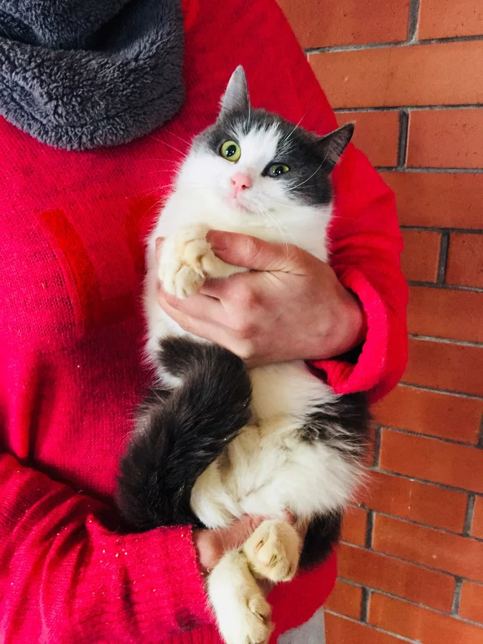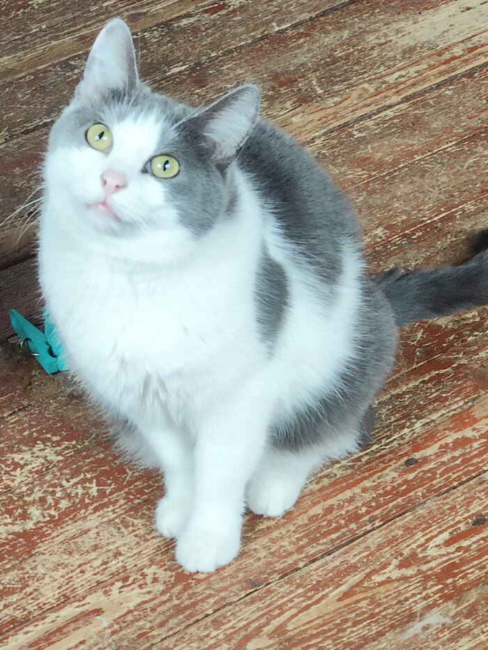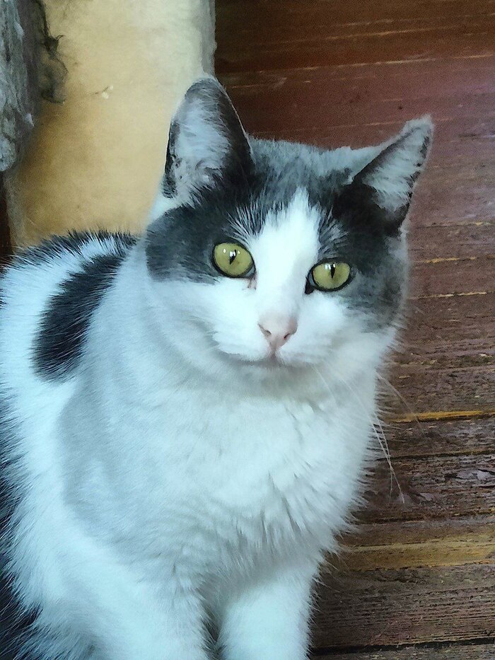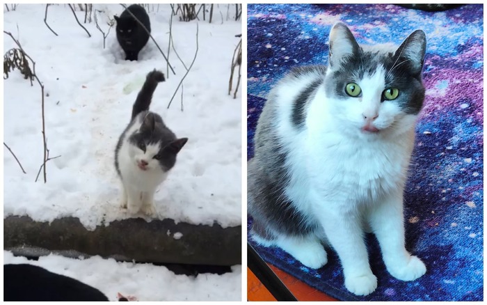 Всем привет от Деми, которая живёт у меня уже пятый год. У нее все в порядке. Она уже взрослая, толстенькая кошка. Потрогать я ее все ещё не могу. Максимум - может понюхать мою руку. Ну я уже ни не парюсь, честно говоря. Деми влюблена в Топтыгу, отлично проводит время в котовнике, очень любит фарш и кошачью мяту. Голова все также на бок (после удаления полипа). Но это не важно, так как у нее теперь есть, где жить в тепле, сытости и безопасности.