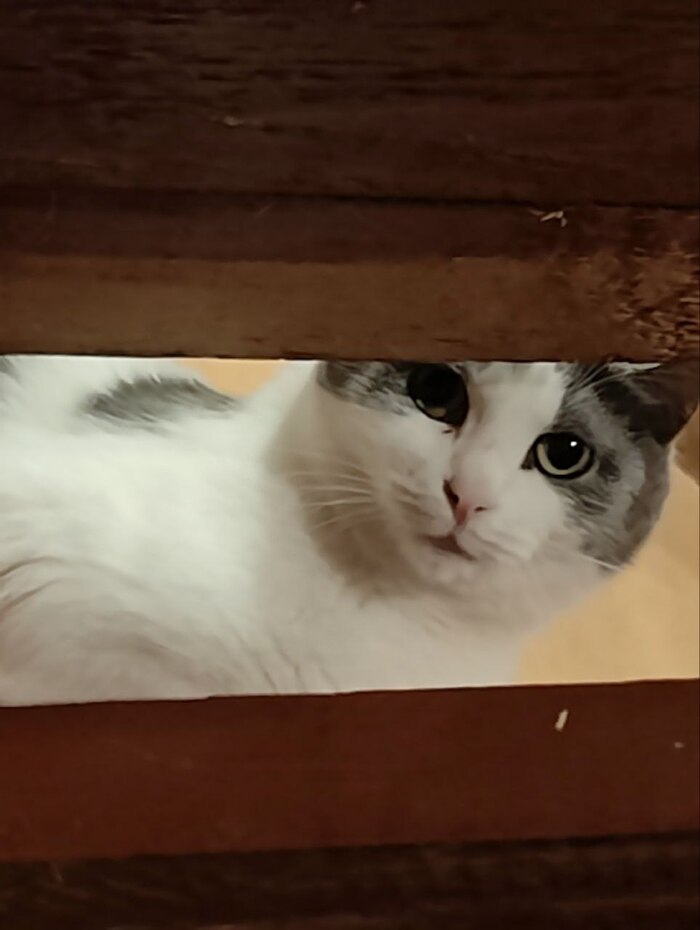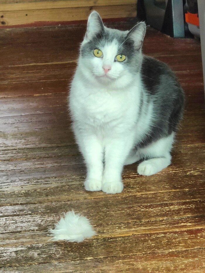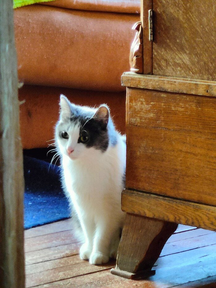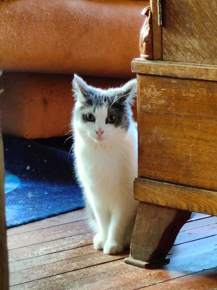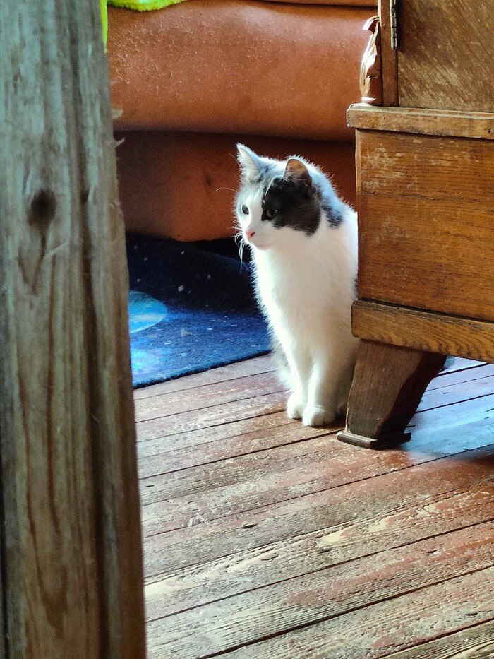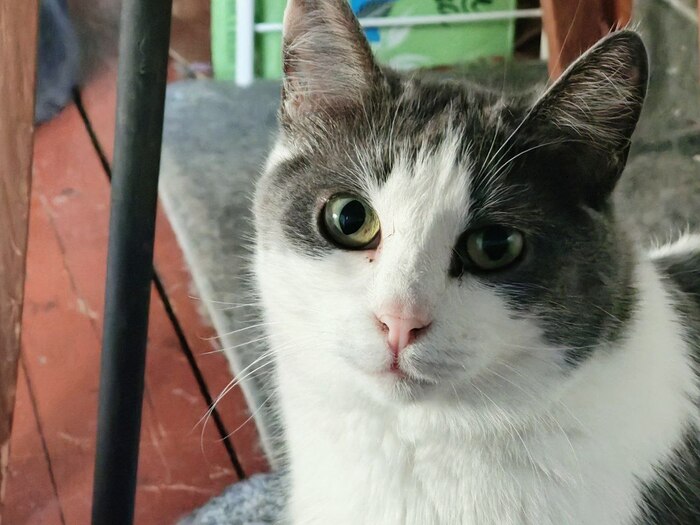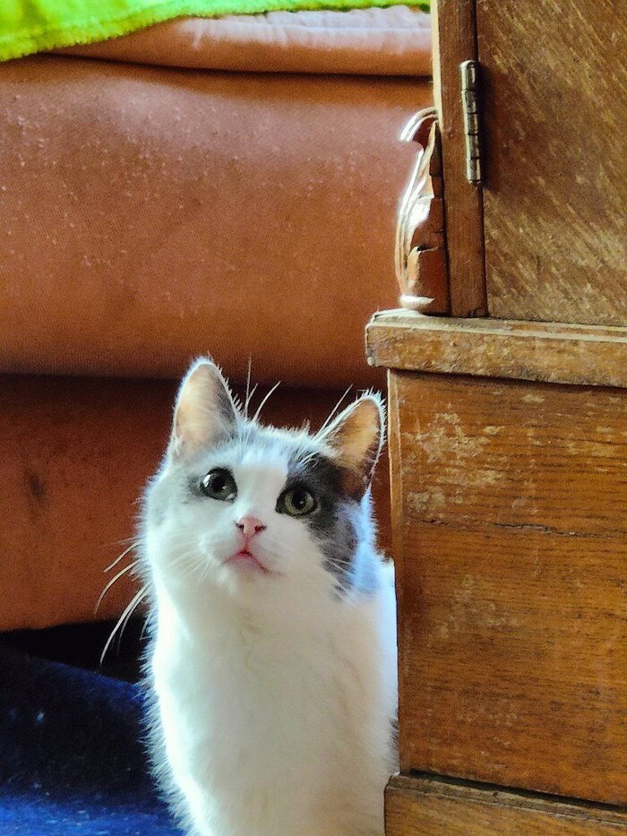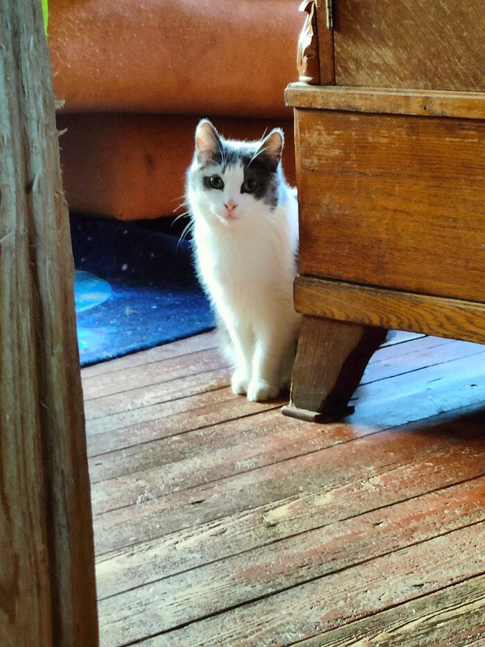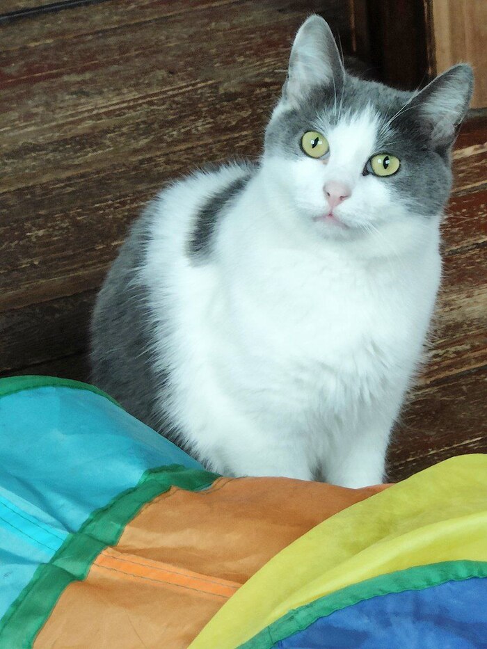 Всем привет от Деми, которая живёт у меня уже пятый год. У нее все в порядке. Она уже взрослая, толстенькая кошка. Потрогать я ее все ещё не могу. Максимум - может понюхать мою руку. Ну я уже ни не парюсь, честно говоря. Деми влюблена в Топтыгу, отлично проводит время в котовнике, очень любит фарш и кошачью мяту. Голова все также на бок (после удаления полипа). Но это не важно, так как у нее теперь есть, где жить в тепле, сытости и безопасности.