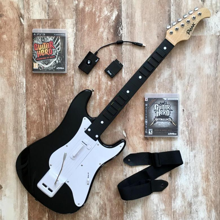Мне однажды пришлось идти из гостей вот с такой "гитарой". Это, если кто не понял, такой тип игрового контроллера для игры в Guitar Hero, Rock Band, Band Hero и прочие подобные ритм-игры. Гитара полноразмерная и сделана по образу и подобию Fender Squier Bullet с ее же физическими размерами. И при этом даже деревянная, тяжеленькая такая.