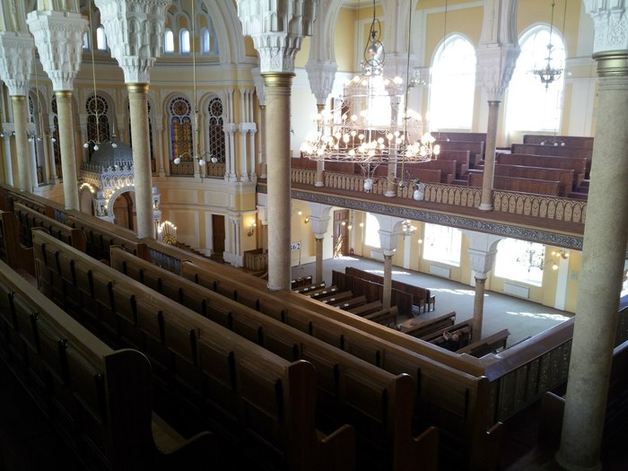 Я когда в Питере жил, учился в еврейской школе, которая была на тот момент внутри хоральной синагоги. Нам был открыт доступ ко всем ее помещениям но чаще всего на переменах мы сидели на втором ярусе (женский этаж) главного зала.