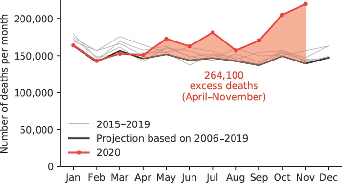 Однако Минздрав дает за этот же период в 8 месяцев число погибших от ковида 40 500 человек.