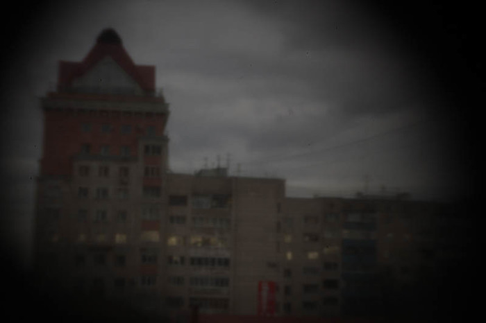 Осталось еще разобраться с перспективой — теоретически у пинхола перспективные искажения должны отсутствовать. Но как видно на предпоследнем кадре, левый домик таки заваливается к центру...