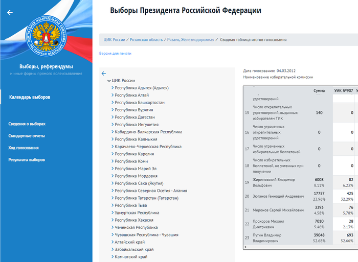 Данные с сайта избиркома (смотрим на результат Прохорова и Путина)